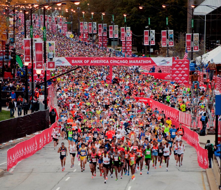 Indeed, of all the races I have run to date, nothing quite compares to the enormous “epicness” of the Chicago Marathon. Here, crowd support is as plentiful as it is deafening. I also know that this can sabotage one’s race if he isn’t careful. It is way too easy to bolt out at an unsustainable pace while being cheered on by the masses. And after a proper taper and plenty of rest, that bolting pace is going to feel easier than it should. I make note of this and remind myself to run as evenly as possible.