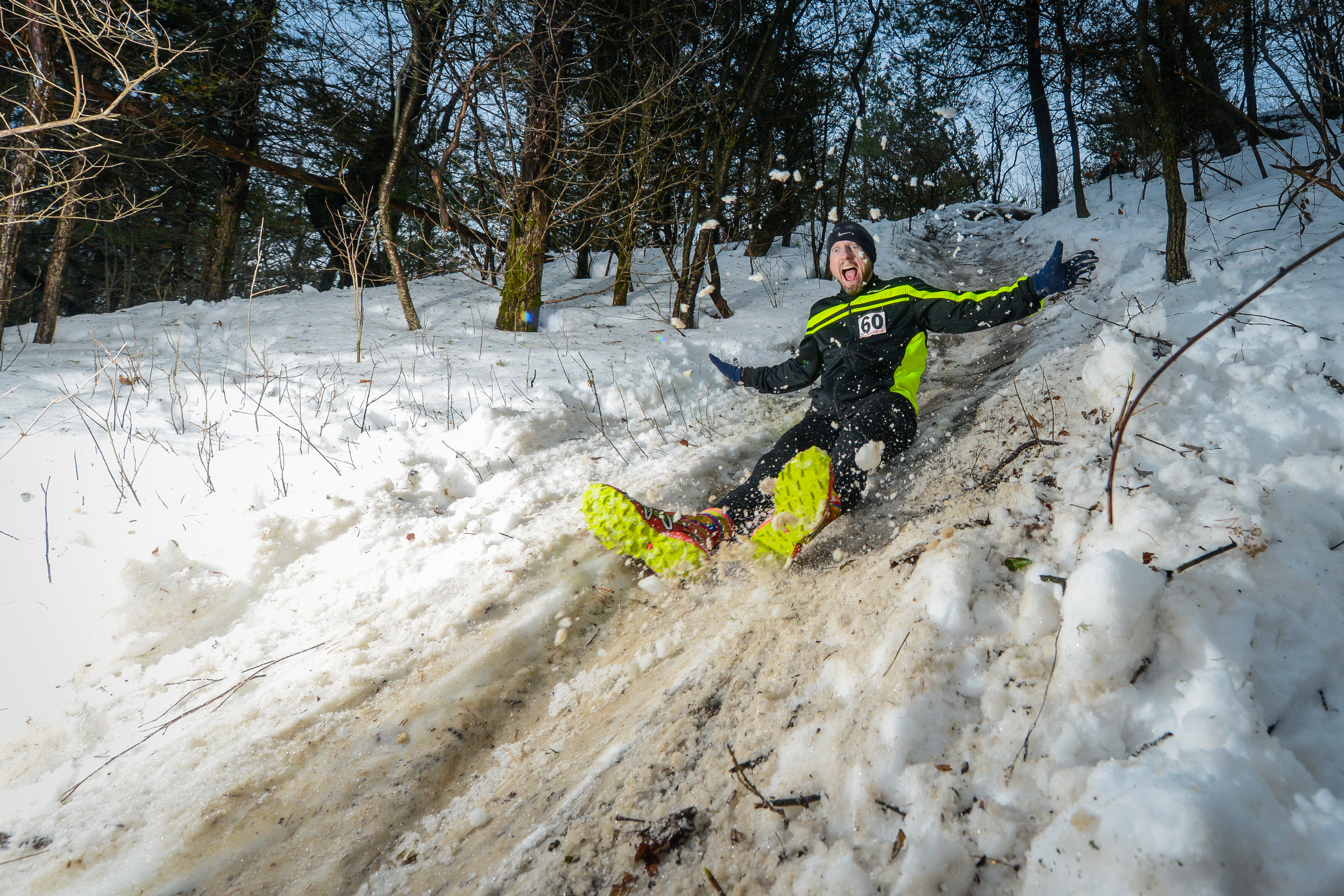 (Having a blast down “Butt Slide Hill”; Photo by Scott Laudick, http://runnerpics.smugmug.com/)