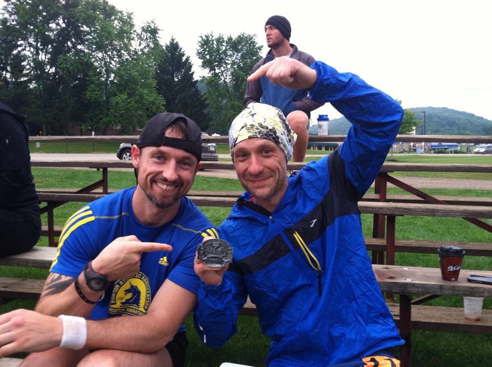 He (Siamak, pictured above on the right, brandishing an epic finisher’s buckle) did it. He finished the Mohican Trail 100 mile race.